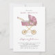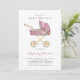 Pink Vintage Stroller It's a Girl Baby Brunch Invitation