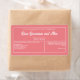 A label for soap or cosmetics products with a pink background and white text. Features space for your company name, ingredients, business information, and more.