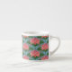 A beautiful Espresso Coffee Mug, with a pattern of pink Water Lilies and blue Dragonflies, from a hand-painted paper collage by Judy Adamson. Excellent gift for someone with a July birthday; part of the Posh & Painterly 'Lily Pond' collection.