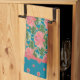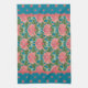 A pretty Tea Towel or Kitchen Towel, with a mix'n'match pattern of pink Water Lilies and blue Dragonflies, from a hand-painted paper collage by Judy Adamson. Excellent gift for someone with a July birthday; Part of the Posh & Painterly 'Lily Pond' collection.