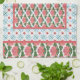 A pretty Tea Towel or Kitchen Towel, with a mix'n'match pattern of pink Water Lilies and blue Dragonflies, from a hand-painted paper collage by Judy Adamson. Excellent gift for someone with a July birthday; part of the Posh & Painterly 'Lily Pond' collection.
