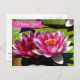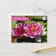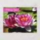 Beautiful pink water lilies float in a summer water garden. A coordinating pink banner is the background for the text, "Missing You!". The text can be replaced with your own message or removed. Use the Edit Design button if you wish to remove the banner or change the font style or colour. The back of the card is blank to give you room for a message and an address for the recipient.