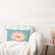 Pink Water Lily Flower on Teal Lumbar Cushion