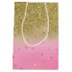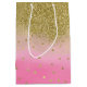 Pink Watercolor Faux Gold Glitter Confetti Medium Gift Bag