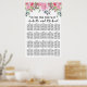 Beautiful pink floral seating chart for a summer or spring wedding. Dark and light rosy pink flowers look beautiful against a variety of greenery. Please find your seat is written in simple and elegant font. The bride and groom names are written below in a romantic script font. It is very easy to edit these and the table lists below.