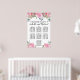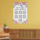 Beautiful pink floral seating chart for a summer or spring wedding. Dark and light rosy pink flowers look beautiful against a variety of greenery. Please find your seat is written in simple and elegant font. The bride and groom names are written below in a romantic script font. It is very easy to edit these and the table lists below.
