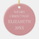 This beautiful ceramic Christmas ornament features a floral ornament in soft watercolor shades of pink and green. Personalise the holiday message on the back.