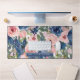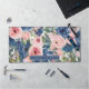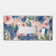 Blush Pink and Navy Blue Watercolor Floral Desk Mat with Custom Name