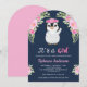 Pink Watercolor Floral Penguin Navy Baby Shower Invitation