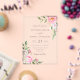 An elegant floral wedding invitation featuring pink watercolor flowers with modern handwritten calligraphy.