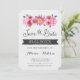 Wedding save the date announcement card with rustic watercolor flowers in shades of pink, vintage details and hand lettered style text. Customisable with your wedding details, available in a wide range of matching wedding products.