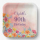 Pink Watercolor Florals 90th Birthday Paper Plates
