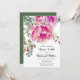 Pink watercolor flowers script typography wedding invitation