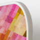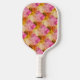 Pink and orange watercolor geometric pattern pickleball paddle.