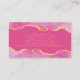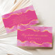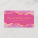 This elegant modern business card features a pink watercolor agate design trimmed with gold faux foil on a coordinating pink background. Personalise it with your name in gold-coloured handwriting-style script and business information in sans serif font. The pink design is repeated on the reverse, with space for your contact information.