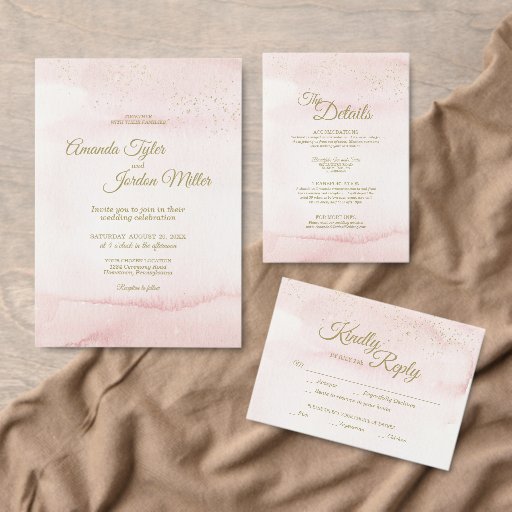 Pink Watercolor Gold Type Wedding CollectionDesigned by Bri Kern