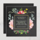 Pink Watercolor Peonies on Chalkboard Look Wedding Invitation