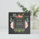 These beautiful, chic wedding invitations show off a lovely watercolor peony flower design. Your wedding invitation wording is enclosed in a centre square framed with faux gold foil. The background of the card has a faded black chalkboard look. We have used designs from LABFcreations.