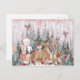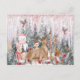 Pink Watercolor Reindeer, Snowman Merry Christmas Postcard
