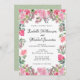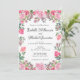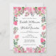Soft pink watercolor roses and greenery create a beautiful frame for this summer wedding invitation. The vines and leaves cascade to frame the text. The wedding couple names are written in a large and flowing script. The remainder of the text is a simple seif font. Very easy to customise. The back of the invitation is a soft petal green. Look closely and you can see a subtle floral design.