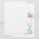 White paper with very faint ruled lines, decorated with a pretty pink watercolour flower arrangement. Perfect for old fashioned writing!