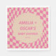 Pink Wavy Chequered Couples Baby Shower Names Napkin