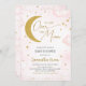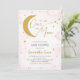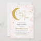 Celebrate the arrival of your little star with this sweet "We Are Over the Moon" Baby Shower Invitation! Featuring a dreamy design with a gold crescent moon, twinkling stars, and soft pink clouds on a delicate white background, this invitation is perfect for a baby girl’s special day. Bring a celestial charm to your celebration with this elegant and whimsical design! BBS754
