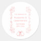 Pink wedding sticker bells groom design. You can customise this pink coloured wedding sticker with your own wedding details. Should you require any help with customising then contact us through the link on this page. Bells scrollwork design personalised pink coloured wedding sticker