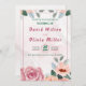 Charm your guests with a delicate wedding invite featuring a soft pink watercolor backdrop adorned with elegant roses and lush green leaves, exuding timeless romance in a simple yet enchanting design.