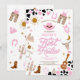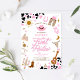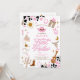 Saddle up for a fun-filled celebration with this pink western rodeo themed first birthday invitation! Featuring cowboy boots, hat, lasso, guitar, sheriff badge, cacti, and cow print accents, this design perfectly captures the rustic charm of a rodeo party. Ideal for a girls first birthday, it blends playful western illustrations with modern style to create a unique and memorable invite. Personalize easily with your event details and make your little cowgirls first rodeo unforgettable!