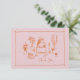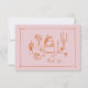 This light pink/peach bridal shower thank you card is based on the popular hand-drawn trend that features French or Italian style food and beverages in a whimsical, doodle, scribble style. This design is ideal for a bridal brunch. It features hand drawn illustrations of a vase of flowers, champagne, cups and saucers, pancakes and cupcakes.