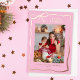 Pink Whimsical Handdrawn Bow Frame Photo Foil Holiday Card