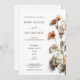 This contemporary modern floral wedding invitation features apricot pink white 3 dimensional wildflowers on a white gray background.