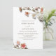 This contemporary minimalist wedding invitation features apricot pink white 3 dimensional wildflowers on a white gray background. With a scannable qr code for your wedding website on the backside.