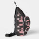 pink white and gray geometric sling bag
