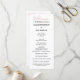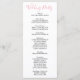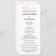 Welcome is written in elegant pastel pink script. Bride and Groom's Names in black typography against crisp white background. Backside has Wedding Party written in pink script. Designed for up to six bridesmaids and groomsmen names. If you have a smaller wedding party simply delete extra bridesmaids and groomsmen rows not needed, and remove extra spacing inbetween, by clicking delete button to move row up to keep uniformity spacing. Original Photography Design © TamiraZDesigns.