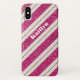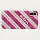 This stylish pink, white, and gold SIMULATED glitter diagonal striped pattern Case-Mate Barely There iPhone X Case has a customisable name template for you to personalise if you wish, or you can delete the name if you prefer that.