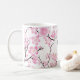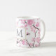 pink white cherry blossom initial customisable mug. A pretty delicate flower china pattern mug look on trend yet timeless in modern homes and country kitchens.