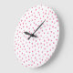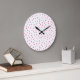 Pink White Confetti Dots Pattern Large Clock