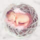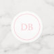 Chic table confetti for a baptism in pink and white, with four of your own photos of you baby girl. Add your baby's initials in pink against white to one side of the smallest confetti, which has a pretty cross on the other side.