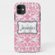 Pink & White Damask Monogram iPhone 5 Case-Mate iPhone Case