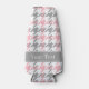 Pink White Dk Grey Houndstooth Name Monogram Bottle Cooler