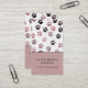 Modern business card features a stylish and whimsical puppy dog paw print pattern in a pink and white colour palette with complimentary paw prints with custom name and title or role presented on a pale pink banner with coordinating accents and text. The back of the card is plain and simple with coordinating text.