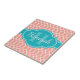 Pink White Elegant Lattice Pattern Teal Monogram Tile