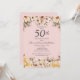 Pink White Floral 50th Wedding Anniversary Party Invitation