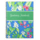 A very pretty, customizable spiral notebook, with a pattern of creamy white Mock Orange and bright pink Weigelia on a sky blue background and a soft green panel for your name or the title of the notebook, from a handpainted watercolour design by Judy Adamson. Would also make an excellent journal.