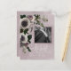 This postcard design is modern and romantic, with the couple's photo featured in a dusty mauve pink frame on a smoky dusty mauve pink background dotted with silver. A beautiful three dimensional white and dusty pink floral spray of anemones and roses with greenery adds a finishing touch. Created by Simply Farmhouse Press.
