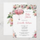 A beautiful pink and white watercolor floral with an umbrella girl Baby Shower invitation.