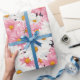 Pink White Flowers Aesthetic Graphic Wrapping Paper