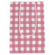 This design features a cheerful gingham check plaid pattern in traditional pink and white.